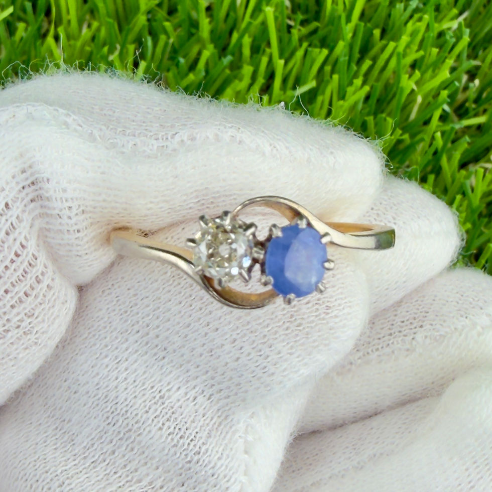 18ct Gold Art Deco Saphhire and Mined Cut Diamond (0.25ct) Moi à Toi Ring