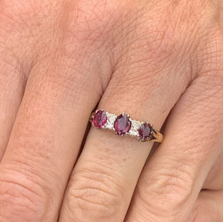 Stones: 3 x Rubies, totalling (0.65ct), 4 x (2.5 point) Diamonds, totalling (0.10ct)