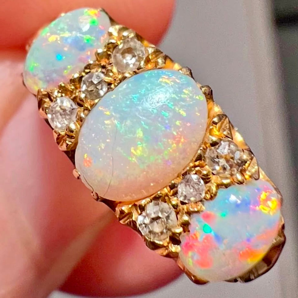 18ct Gold Edwardian Trio Opal and Diamond Cluster Ring