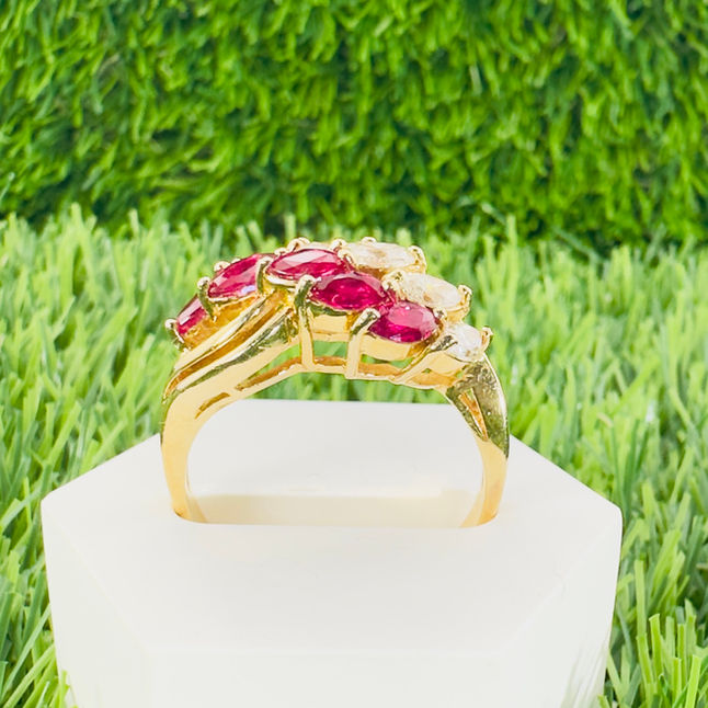 18ct Gold Marquis Cut Diamonds (1.00ct) and Ruby Cluster Ring
