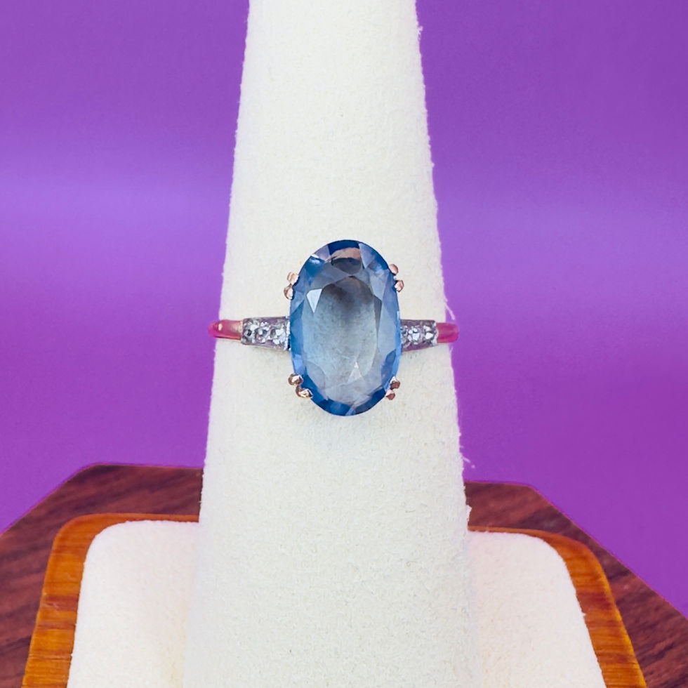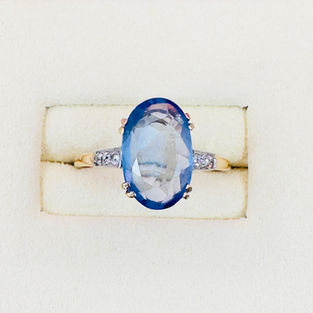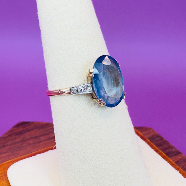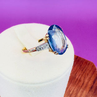 A Art Deco 18ct Gold/Platinum Large Oval Cut Cornflower Sapphire (3.50ct) and Diamond Ring. The ring is set with an old oval cut cornflower sapphire approx (3.50ct), the sapphire is super quality with excellent clarity and a stunning cornflower colour. On each side of the sapphire are 3 (1.5 point) old mined cut diamonds set in platinum, totalling approximately (0.10ct) The ring is unmarked however fully tested for 18ct gold and platinum, this is not unusual for a piece dating from C.1920's (prior to the hallmarking regulations). The face of the ring measures 1.2cm in length x 1.3cm in width and the ring weighs 2.3 grams. The ring is a size N 1/2 and can be easily resized. The ring is in excellent condition.