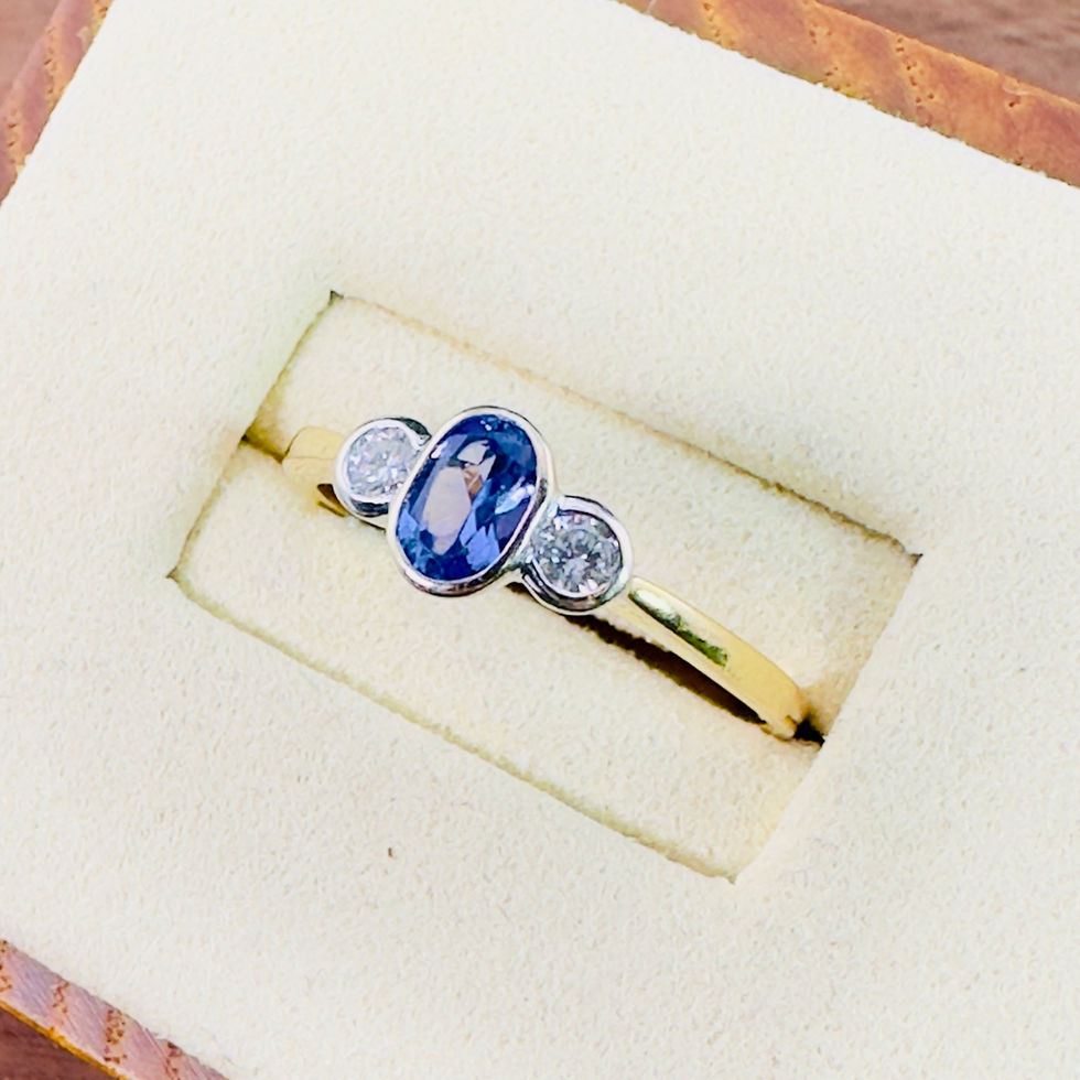 18ct Gold Tanzanite and Diamond Three Stone Ring
