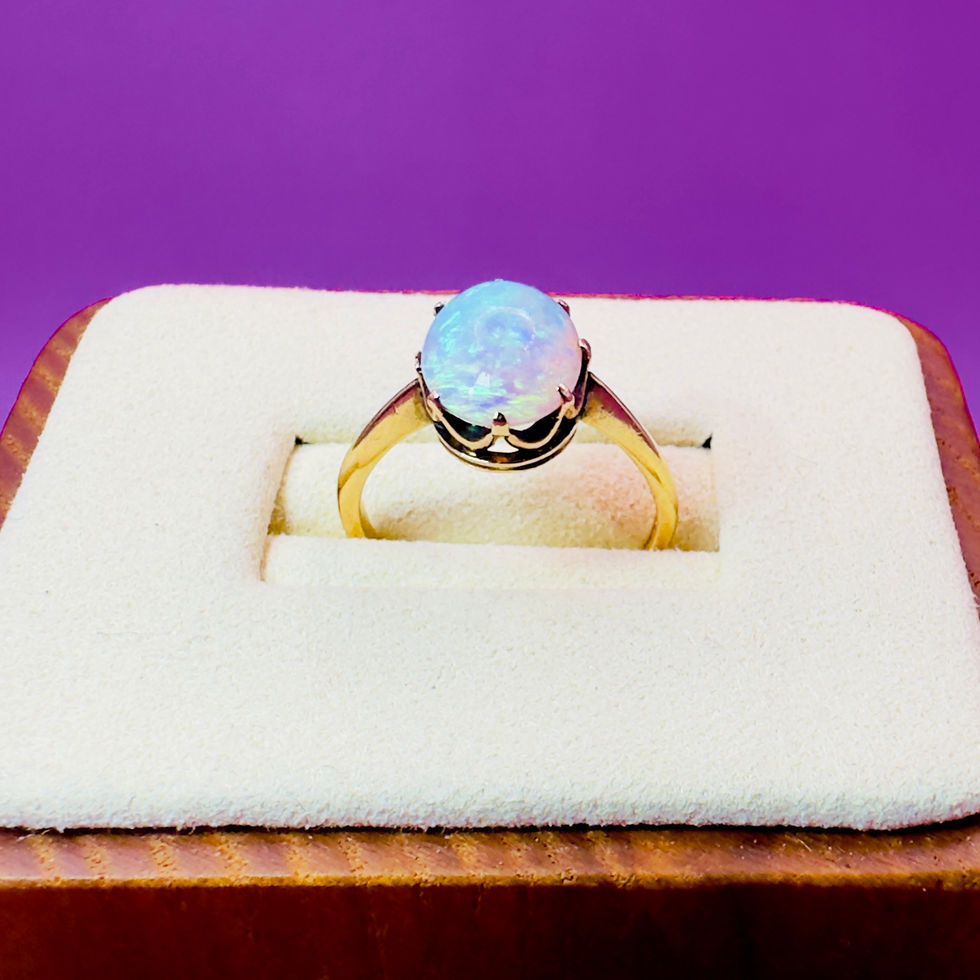 18ct Gold Victorian Claw Set Opal Solitaire Ring C.1870