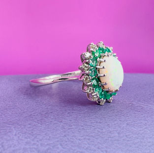18ct White Gold Opal, Emerald and Diamond Cluster Cocktail Ring