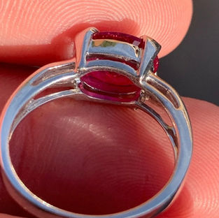 18ct White Gold Oval Cut Ruby (3.00ct) and Diamond Ring. The ring is set with a stunning oval cut ruby (3.00ct) with 2 diamonds set into the band . The ring is fully hallmarked for 18ct gold. The face of the ring measures 1.5cm wide x 1.0cm high and the ring weighs 4.8 grams. The ring is a size N 1/2 and can be easily resized. The ring is in excellent condition.
