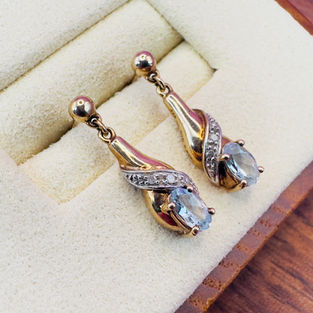 Stone(s): 1 x aquamarine (0.25ct), 3 x diamonds in each earring drop