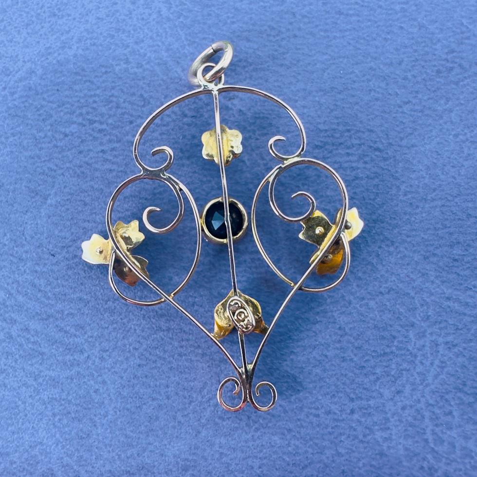 9ct Gold Art Nouveau Amethyst and Pearl Pendant