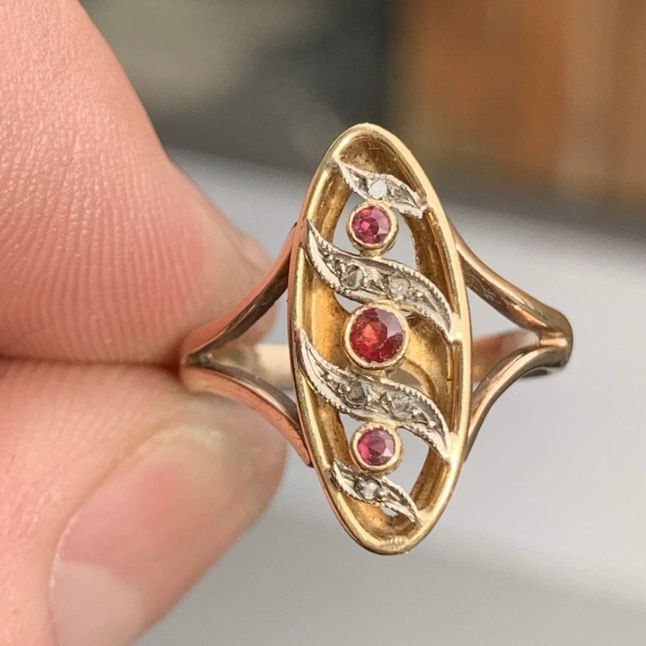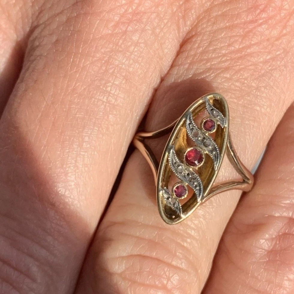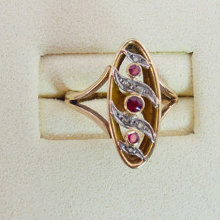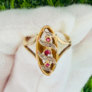 9ct Gold Art Nouveau Ruby and Diamond Ring C.1900