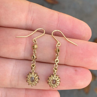 9ct Gold Blue and Green Sapphire Cluster Dangly Drop Earrings