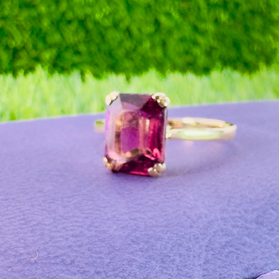 A fine vintage 9ct Gold emerald cut Amethyst (3ct) Solitaire Ring 9ct. The ring is set with an emerald cut amethyst (3.00ct). The face of the ring measures 10mm x 8mm and they weigh a total of 2.6 grams. The ring is a size S. The ring is in very good condition.