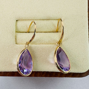 9ct Gold Large Pear Cut Amethyst Drop Earrings