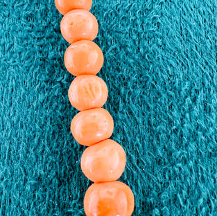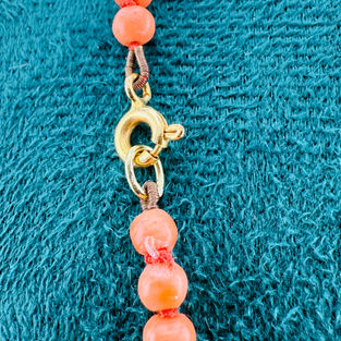 A lovely vintage 9ct Gold Natural Coral Necklace Valentine's Special with Free Presentation Box. The necklace is set with lovely natural coral. The necklace measures 16"/41cm in length and weighs 11 grams. The coral have a lovely salmon pink lustre and are in great condition.