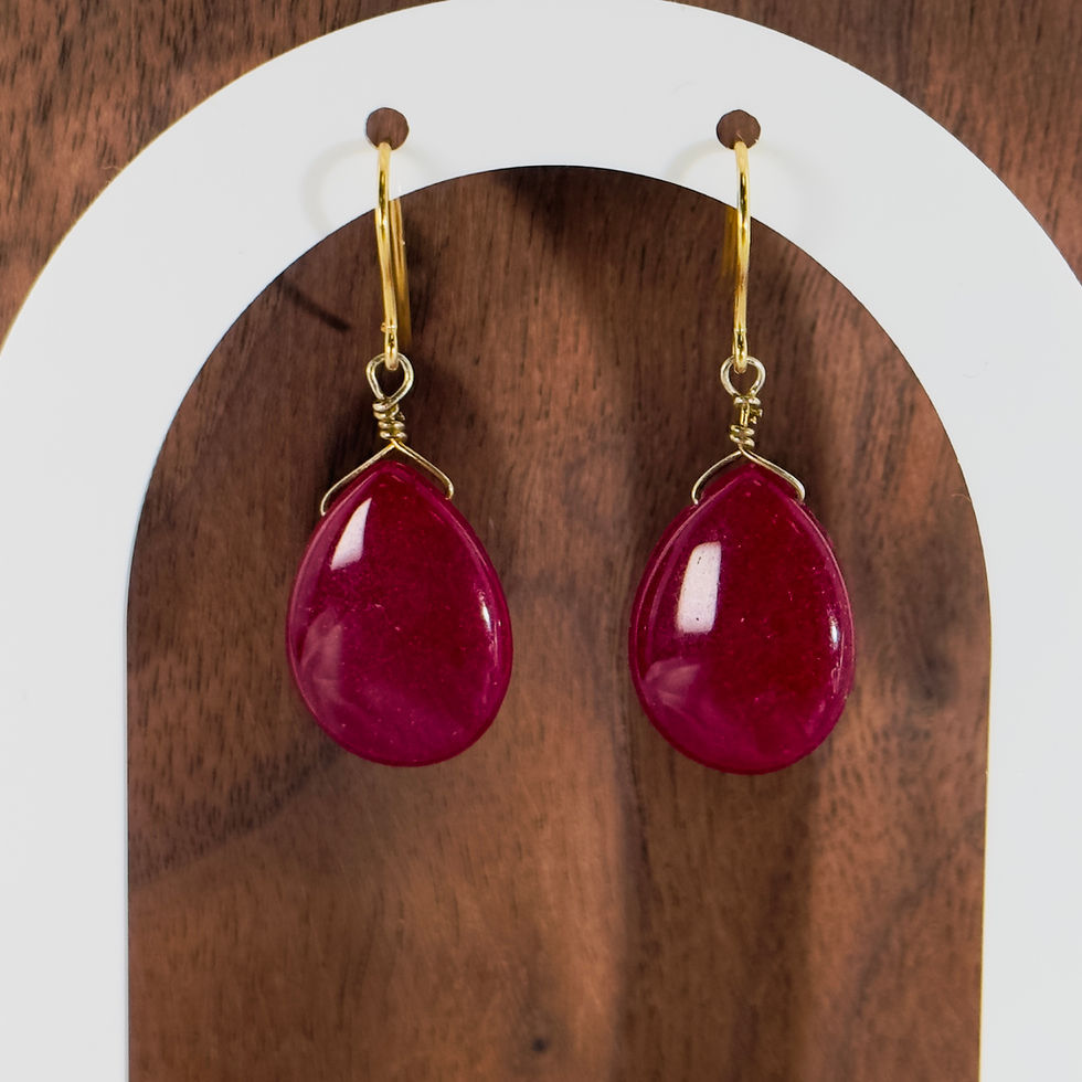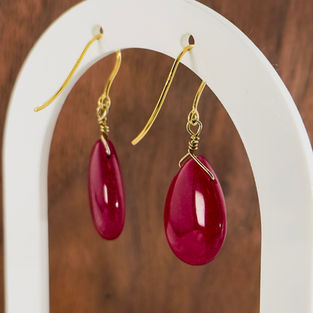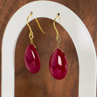 9ct Gold Pear Cut Cabochon Ruby Drop Earrings