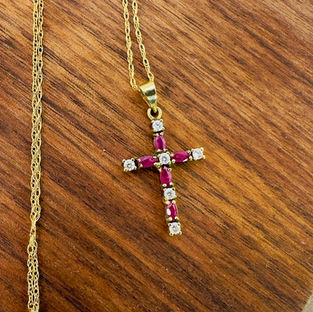 9ct Gold Ruby and White Spinel Cross Pendant Necklace