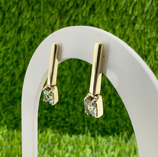 9ct Gold Square Cut Aquamarine Drop Stud Earrings. The earrings are set with a square cut aquamarine (0.50ct) in each stud. The earrings are marked 9ct gold. The earrings measures 20mm long x 4mm wide. The earrings are stud back designed for pierced ears. the total weight is 2.2 grams, The earrings are offered in excellent condition.