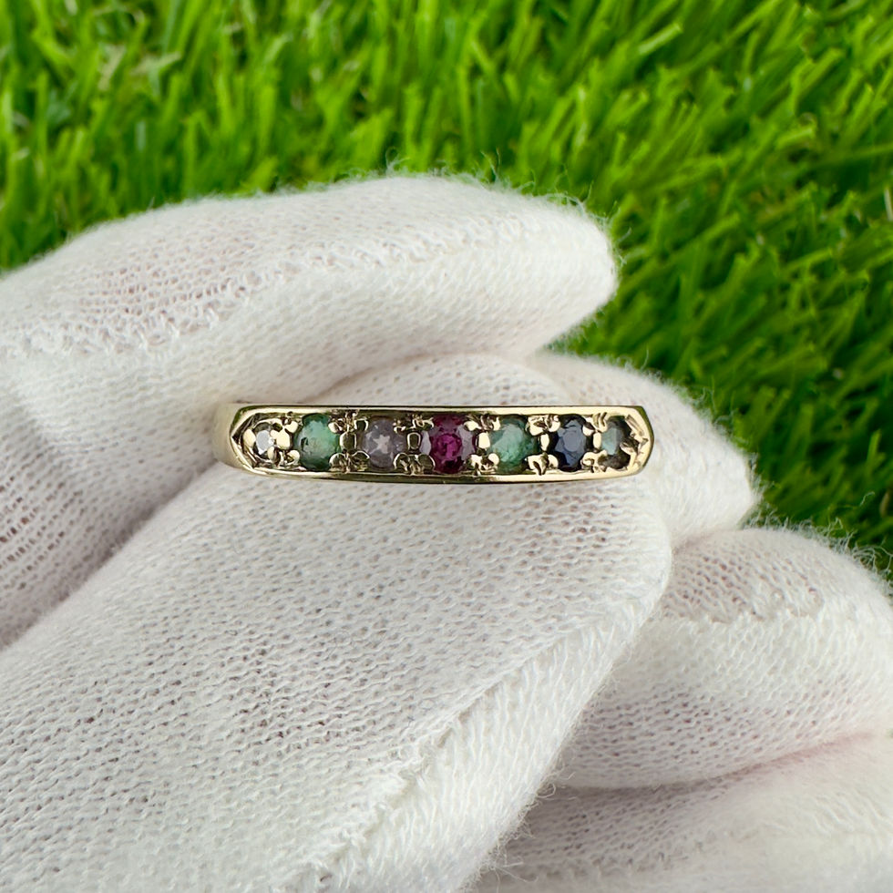 9ct Gold Vintage DEAREST Multi-gem Half Eternity Ring