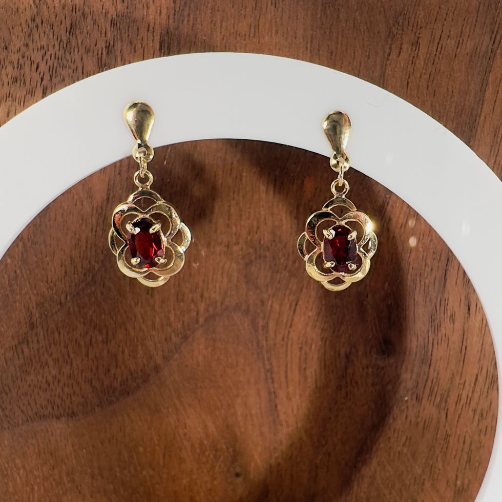 9ct Gold Vintage Garnet Drop Stud Earrings