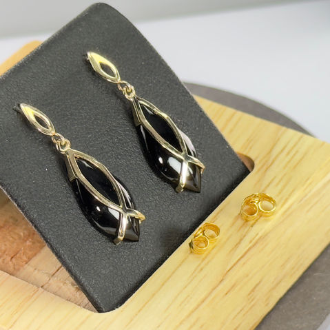 9ct Yellow Gold Pear Cut Black Onxy With Overlapping Gold Stud Earrings
